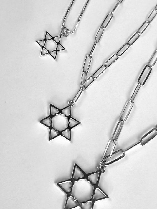Star Of David With Hearts Necklace