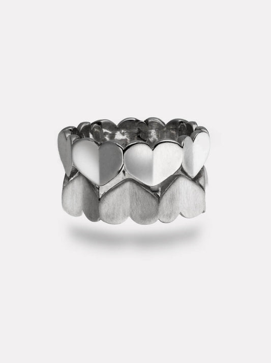 Large Hearts Silver Ring